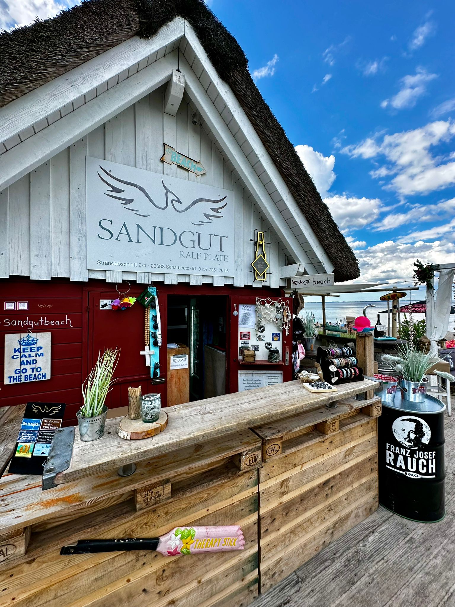 Ihr findet uns am Strandzugang 3 in Scharbeutz. Dort erwartet euch unser Büdchen mit Beachshop, kalten Getränken, Kaffeespezialitäten und Ice Cream.